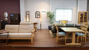 今回のフェアでは、「飛騨産業」「シラカワ」「イバタインテリア」といった飛騨を代表するメーカーの家具を一堂に展示。匠の技によって生み出される美しい木目や、滑らかな手触り、細部まで行き届いた仕上げを実際にご体感いただけます。